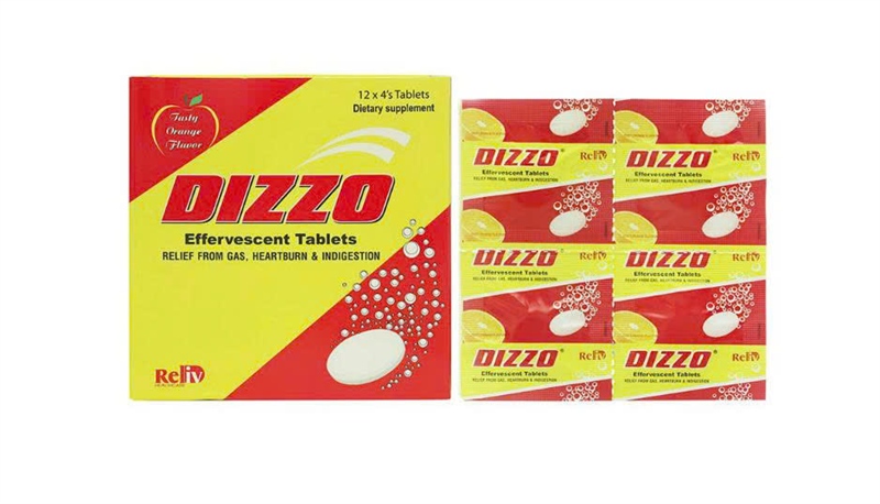 Dizzo hỗ trợ tiêu hóa giảm đầy hơi khó tiêu vỉ 4 viên - Relief from gas, heartburn & indigestion